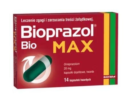 Bioprazol Bio Max zawiera substancję czynną o nazwie omeprazol, która zmniejsza ilości kwasu solnego wydzielanego w żołądku. Preparat stosowany jest u pacjentów dorosłych w krótkotrwałym leczeniu objawów refluksu żołądkowo-przełykowego (np. zgaga i zarzucanie kwaśnej treści żołądkowej – kwaśnego odbijania).