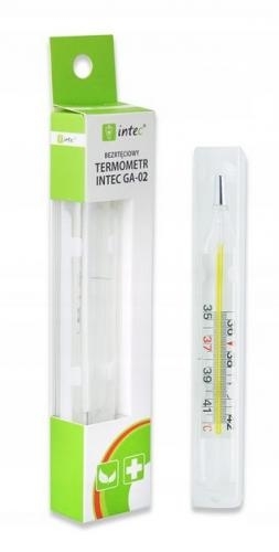 Bezrtęciowy termometr Intec GA-02 to w pełni bezpieczne, funkcjonalne i proste urządzenie do mierzenia temperatury. Pomiaru temperatury można dokonać w ustach, pod pachą/ w pachwinie lub doodbytniczo w zakresie od 32 do 42°C. Dokładność wynosi 0,1°C.